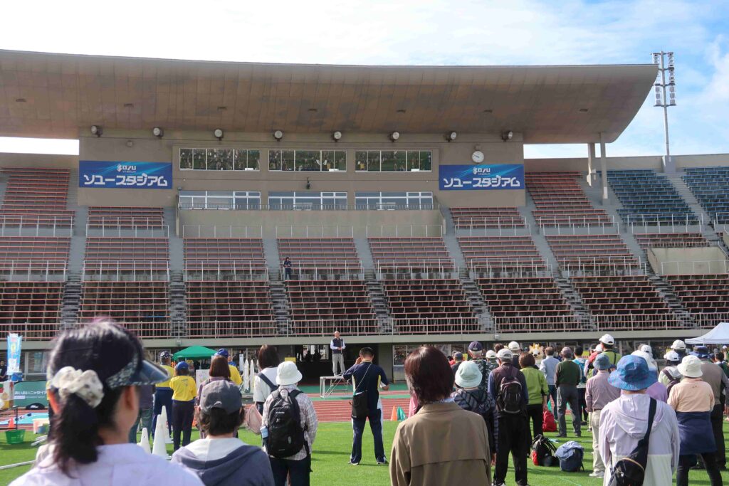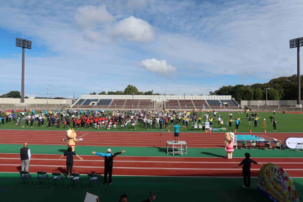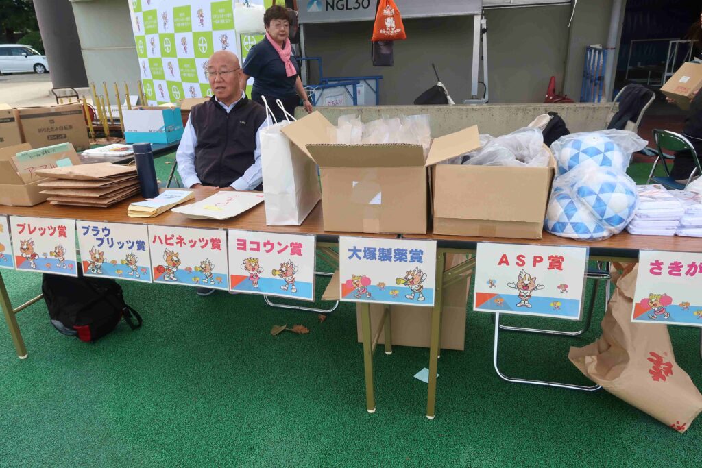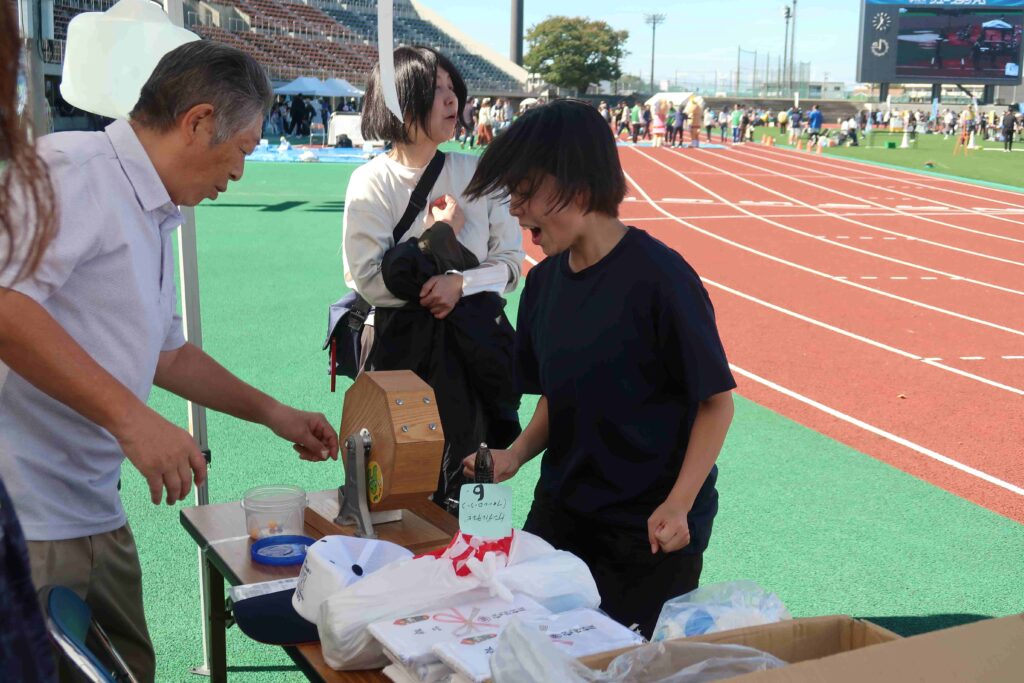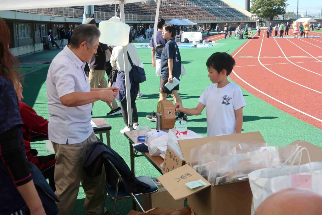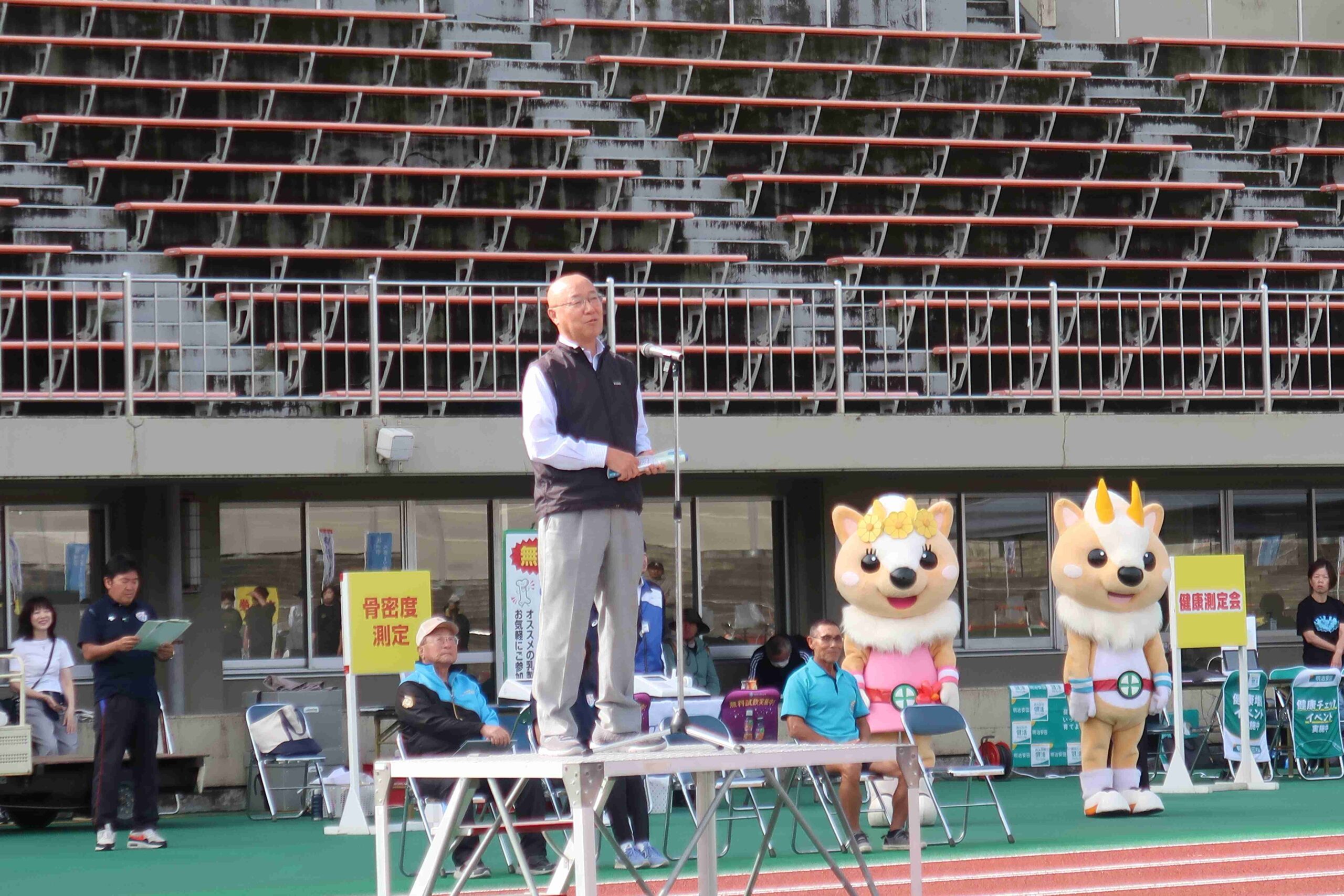 10月13日、ソユースタジアムにての健康のつどい3日目。開会式での挨拶、フリーマーケット、抽選会の担当をスポーツ協会が行いました。