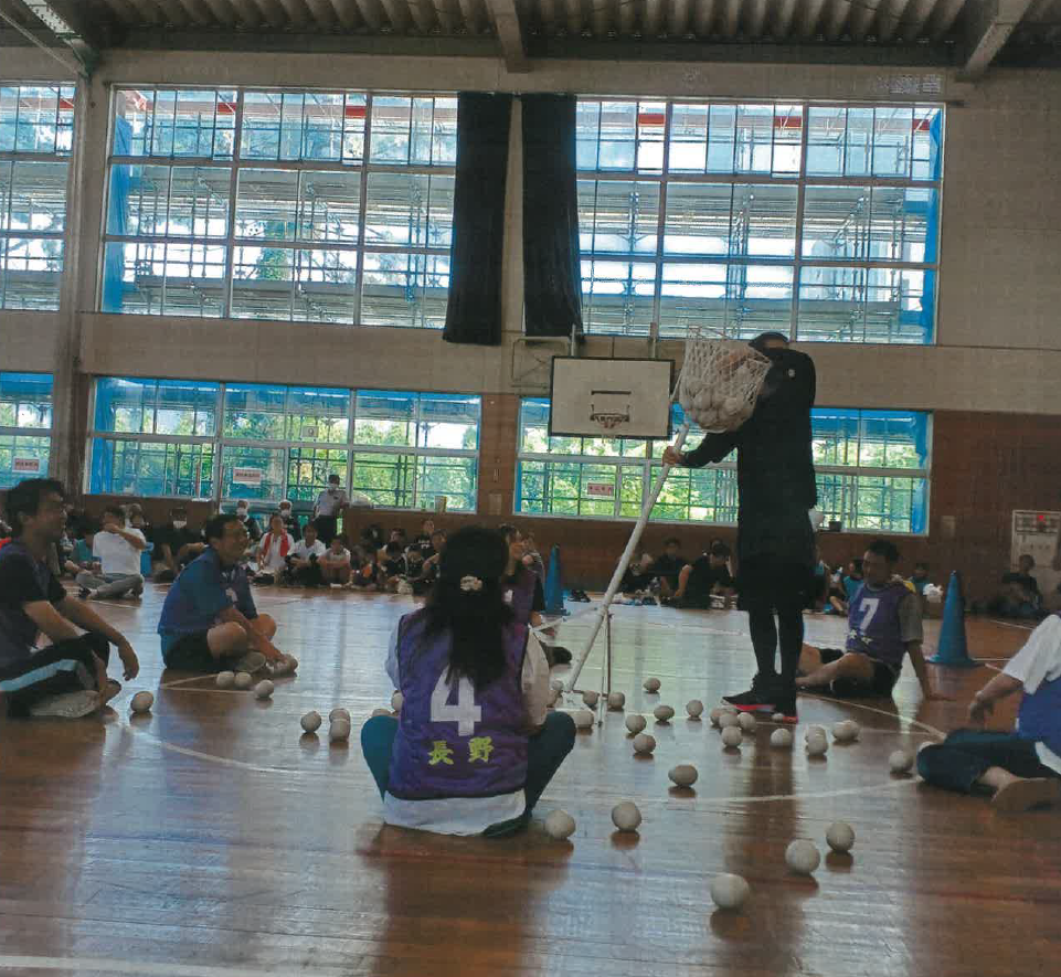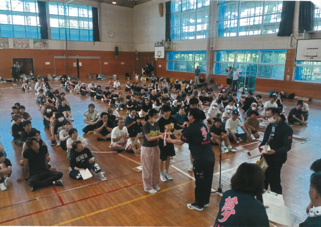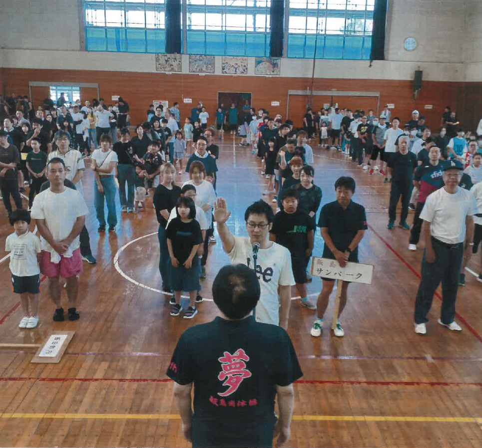9月14日、飯島南地区スポーツ協会主催「飯島南地区スポーツ協会主催体育祭」を開催しました。前日までの雨により、初めからグラウンドではなく体育館で開催することを決定したため、参加者が集まるかどうか心配でした。当日は、14町内の内6町内が合同チームでのエントリーとなったが、2町内ずつ3チームを作ることができて、11町内で競技を行いました。久しぶりの体育館開催で不安もありましたが、体育館で行う競技に新鮮さを感じて、子供たちのはしゃぐ姿や大人たちの歓声もあり大成功で終えることができました。
