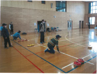 2月1日、八橋地区スポーツ協会主催「フロアカーリング教室」を開催しました。雪による悪天候のため、参加者が少なかったのですが、皆さん慣れている方々がほとんどだったので、本番さながらのプレーで盛り上がっていました。