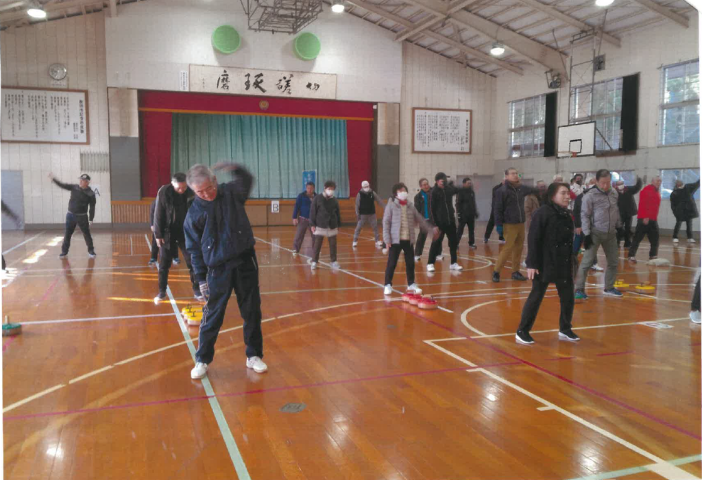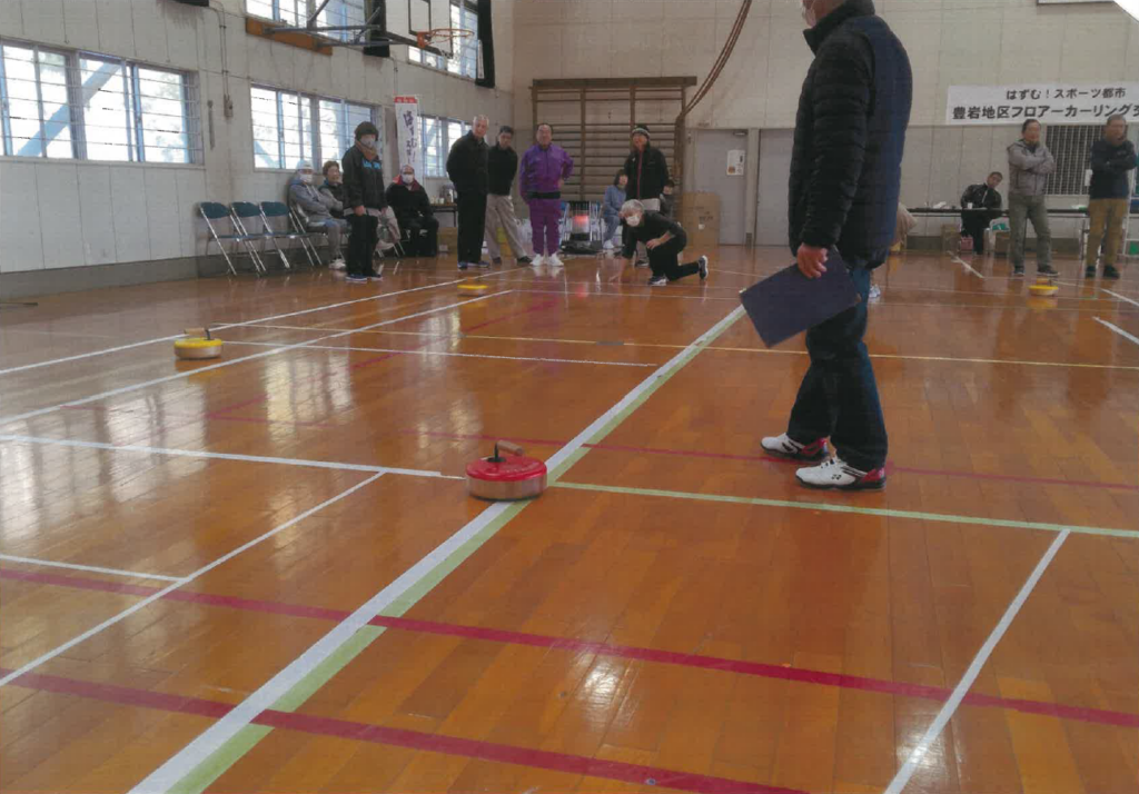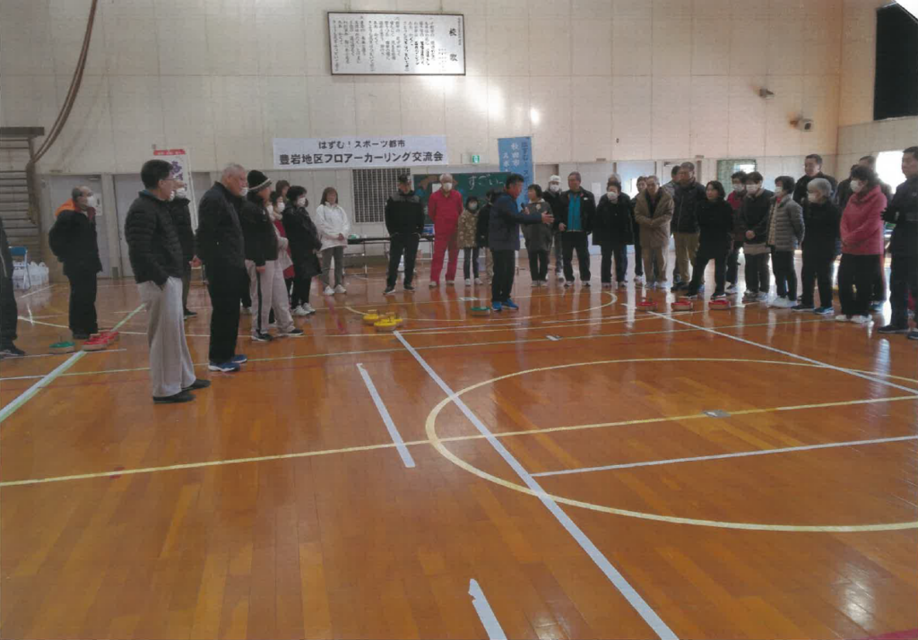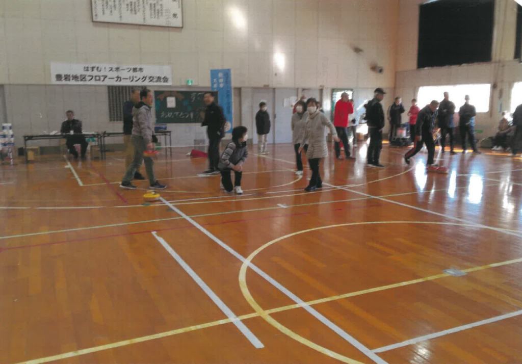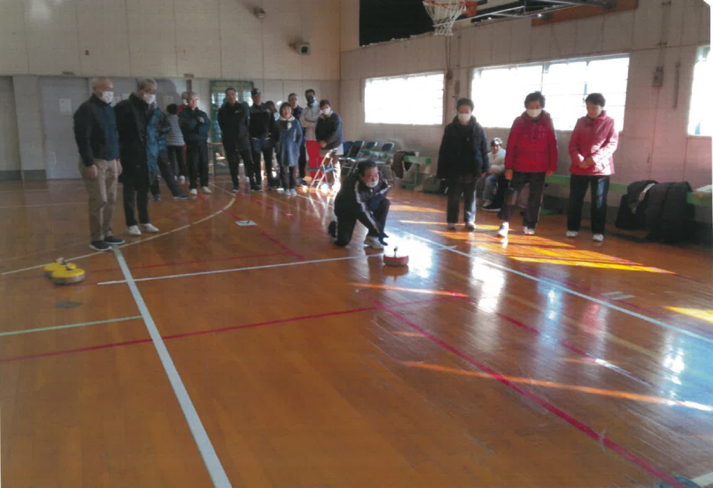 2月22日、豊岩地区スポーツ協会主催「世代間交流フロアカーリング大会」を開催しました。技術の差があまりないような組合せだったので、和気藹々の雰囲気の中で行うことができました。小学生は段々上手になり、大人よりコート内に入る率が多くなり、お顔をたくさん見ることができました。会場には来たが恥ずかしがってゲームに参加できなかった子どももいましたが、来てくれただけでもよかったです。無理強いせず、また来てねと声かけをしたら笑顔を見せてくれました。