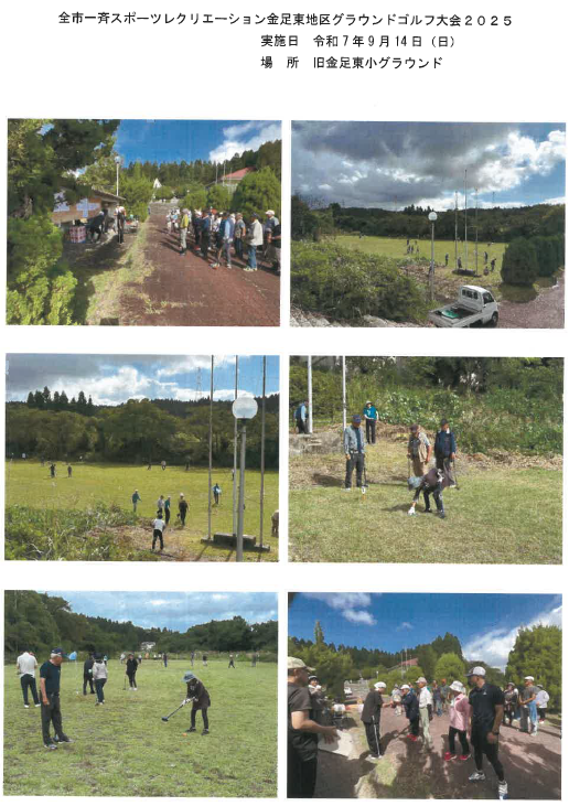 9月29日(月) 2025.09.29 9月14日、金足東地区体育協会主催「金足東地区グラウンド・ゴルフ2025大会」を旧金足東小学校グラウンドにて開催しました。大会直前まで雨模様の天気ではありましたが、開会式以降は良い大会となりました。気温もそれほど高くはなかったものの、適宜休憩と水分補給を促したほか、コロナ対応として、任意でマスクの着用、手指の消毒を促しました。