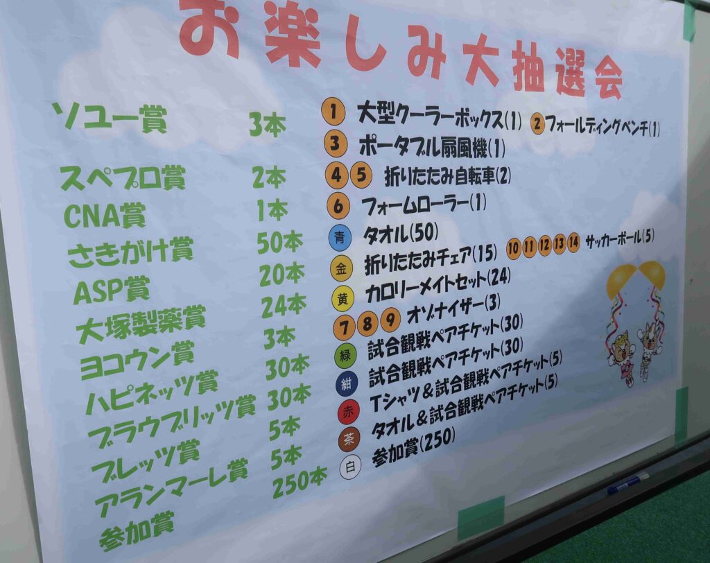 第45回健康のつどい3日目、恒例のお楽しみ大抽選会。スポーツテストに挑戦した方だけが挑戦できるガラポン。スポーツテストAでも当たるとは限らない、スポーツテストDでも当たる…それがガラポン。今回は約250人がガラポンを回しました。みんなが最初に目指すのは折りたたみ自転車…だけど、なかなか当たるものではない。回しても回しても残念白玉参加賞でがっかり。ずっと様子を見てて分かったこと…「○○欲しい」と欲を出して回すと当たらないもんで、逆に、欲しいものはなく、とにかくガラポンを回したい思いで回したら当たっちゃったということが結構多いこと。だからなのか、折りたたみ自転車を当てたのは欲のない幼児と小学生。当たってびっくり玉手箱状態。ねらえばねらうほど当たらないのがガラポンなのかも。家族4人が引いて4人とも白玉だったり、逆に4人とも当たりだったり…。本当に当たりがあるのかと不安になるほど最後まで出なかった3本のヨコウン賞が姉妹で連続当たったり…。せっかく当たったのに、友達が白玉で参加賞をもらって「そっちがよかったなあ」と羨ましそうに言っている小学生やタオルが当たって大喜びして記念写真を撮っている中学生、参加賞をもらってガッツポーズをしている高校生の姿は微笑ましい光景でした。私の親愛なる助手チャッピーに「当たりやすい人に見られる傾向」を聞いてみると。①「運が良い」と思っている人…結果的にチャンスに多く出会い「当たり」を引く確率が高まる。②楽しんで引いている人…「当てよう!」と力むよりも、「まあ楽しもう」とリラックスしている人の方が当たることが多い。③「タイミング」を大事にする人…なんとなく「今引こう」と直感で動くと当てることが多い。とのこと。なるほど、自分は決して運がよい方ではないし、1億当たったらあれ買おう、これをしよう、あわよくば前後賞もねらおうと思ってしまう、この日にここで買おうと決めて買っている宝くじ。…当たらないのは当然ですね。