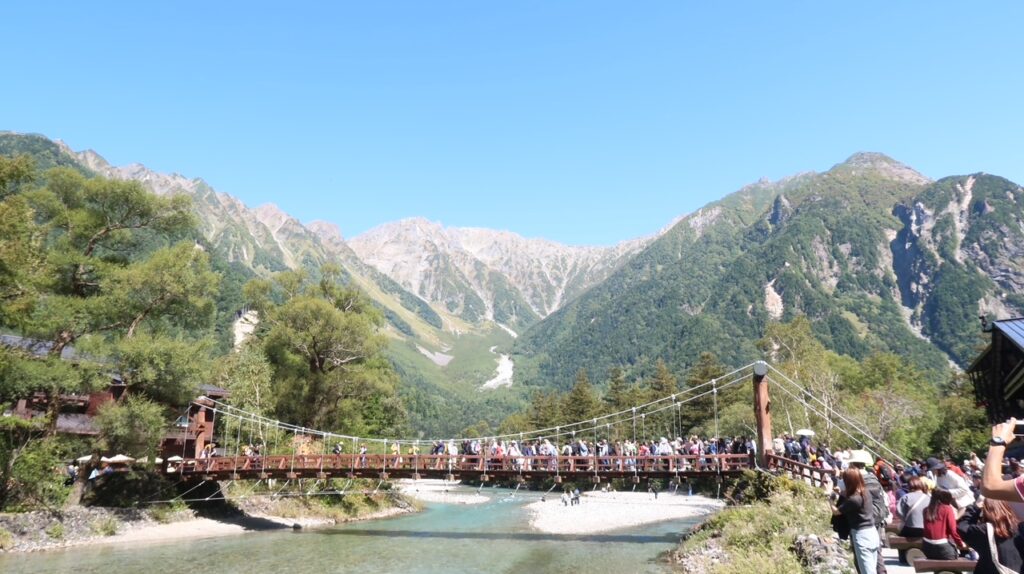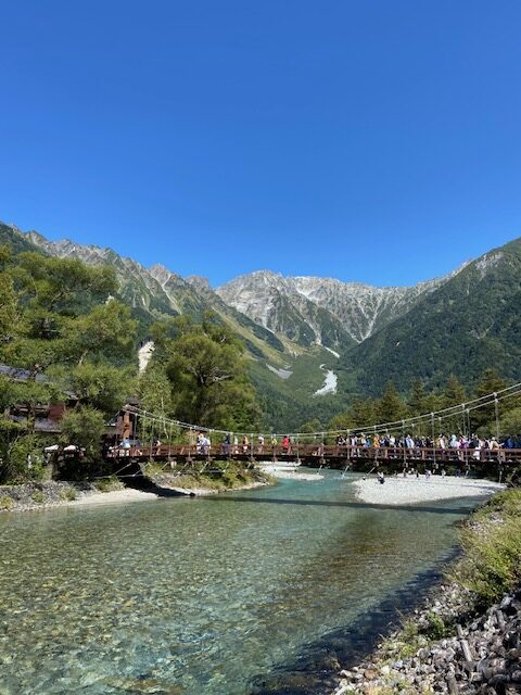 秋田駅から8時11分発の秋田新幹線こまち号、大宮駅から北陸新幹線はくたか号、長野駅からはJR篠ノ井線で松本駅へ。篠ノ井線の姨捨駅から見える長野市の風景は絶景。松本駅からは17時45分発のバス(アルピコ交通)で平湯温泉へ。到着は19時13分。ここまで秋田を出発してから実に11時間。半日かけても上高地には着きません。平湯温泉の「ひらゆ温泉」に硫黄臭漂う温泉につかり、旅の疲れを癒やす。翌朝7時発の上高地行きのバスに揺られること約30分。ようやく上高地に到着。大正池バス停で降り有名な河童橋まで3km。そこから猿の親子に先導されて明神池まで3km、戻ってきて3km。標高1500mの上高地で10kmのトレッキング。天気にも恵まれ、気温も20度超えで半袖で十分。この日は今年最高の25000歩越え。上高地を堪能し、平湯温泉に戻って来て、前日食べられなかった名物「はんたい卵」を2個食べることができて大満足。これからまた半日かけて秋田に戻ります。平湯温泉は飛騨温泉郷、松本市上高地、いったいここは長野県なのか岐阜県なのか。