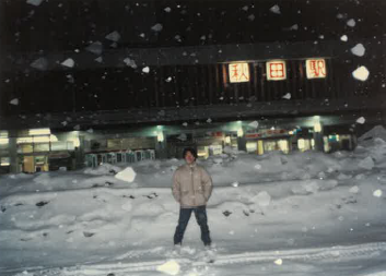 【2日目】秋田駅5:18始発に乗り、青森からはフェリーで津軽海峡を渡り、いよいよ北海道上陸16:05。函館駅16:53発で札幌へ。最終電車が札幌着23:52。ほぼ午前0時。しんしんと雪が降る中、野宿する場所を探す。おそらく氷点下の中、地下の階段下のスペースを見つけ、寝袋で寝ようとしていたら階段上から警察官に、「そこで寝たら死んじゃうよ」と言われたけど、死ななかった。2月26日極寒の札幌にて。