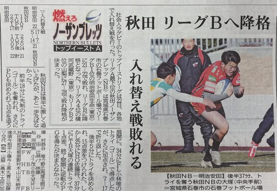 がんばれ!秋田ノーザンブレッツ 2026.01.282026.01.29 ★2025年シーズン 入替戦では同じ明治安田と対戦、29-14で快勝し見事リベンジ ★2025新規加入選手 ショーン・ウィリアムス ★2024年シーズン 明治安田ホーリーズとの入替戦に1点差で敗れBグループに降格 ★2024 選手紹介